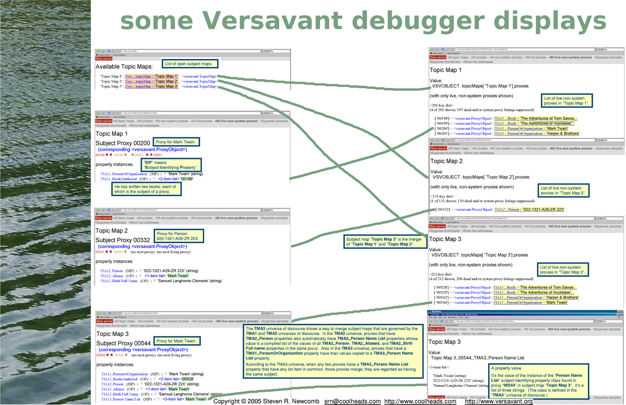 A recent paper describes how subject maps can simultaneously reflect "Multiple Subject Map Patterns for Relationships and TMDM Information Items", using Versavant-style TMA disclosures. (backup copy of this paper)